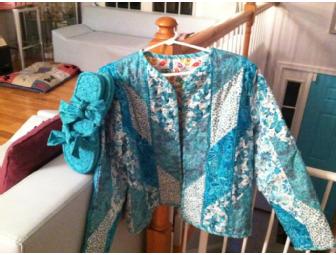 Hand Quilted Teal Jacket and Custom Made Flip Flops size Medium.