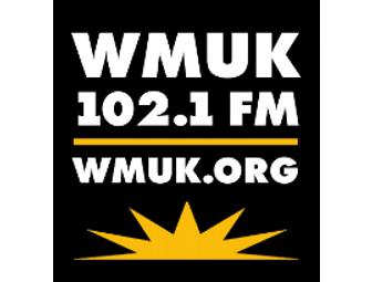 Ever wonder what happens "behind the scenes" at a public radio station? Then you won't want to miss the opportunity to sit in with announcer/produer Cara Lieurance. The winning bidder will enjoy one hour in the studio with Cara during her morning (10-11 a.m.) broadcast of her daily classical music program on WMUK, 102.1 FM. (The winning bidder will sit in on the broadcast but will not necessarily be on the air.) As a "Behind the Scenes" guest, you may even have the chance to suggest your favorite classical selections to be played on the air!