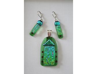 Designed by artist Pat Werme from Glassic Art & Design, the set includes a pendant with matching earrings made from fused glass.