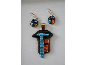 Designed by artist Pat Werme from Glassic Art & Design, the set includes a pendant with matching earrings made from fused glass.