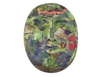 Stella Schweitzer, an Arvada artist, created this mask in tribute to the U.S. Marines who have served our country. She offers a special tribute to Purple Heart recipients.