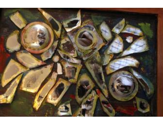 Mirror fragments on wood