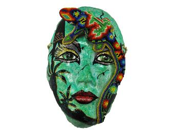 The Summit Steakhouse, 2700 S. Havana in Aurora, contributed this mask by artist Frances English. Elegant dining abounds at The Summit Steakhouse. A warm, friendly atmosphere and romantic candlelight promises an upscale culinary experience. www.thesummitsteakhouse.com. Frances English is gentle, yet so strong, gives guidance when asked, is dependable and a great source of comfort. If I had my choice of artists or mothers, Frances is the one I'd select, says owner Gayle Novak.