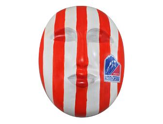 MAD Studio in Denver created this mask for the USA Pro Cycling Challenge. It represents the Most Aggressive Jersey of the USA Pro Cycling Challenge. Each stage of the competition will present countless obstacles. The rider who best asserts himself in the peloton and tackles the challenges of the day will be awarded the Most Aggressive Rider jersey. Andy Schleck won the Most Aggressive jersey for his charge on stage 5 into Breckenridge. The 2nd Annual USA Pro Cycling Challenge will take place Aug. 20 - 26, traveling through 12 host cities from Durango to Denver.