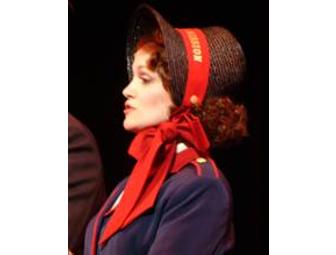 You'll be the epitome of fashion at your late night prayer meeting with your Sister Sara Hat. Made by Rep artists in our shops and worn by Jane Bodle (as Sergeant Sara Brown) in the Rep's 2002-03 production of Guys and Dolls, the one-size-fits-all black, red and gold hat features a band which reads "Save a Soul Mission." Also appropriate for impromptu trips to Cuba.