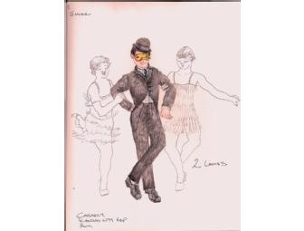 Take home a piece of inspiration from one of the most magical and exciting shows in Rep history - the costume rendering of the Cabaret Emcee with Two Kit Kat Girls. This beautiful, artistic rendering was conceived and drawn by costume designer Sarah Beers and mounted on foam board for display.
