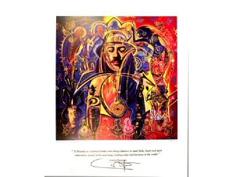 This poster artwork, title "Shaman" was created by Rudy Gutierrez. It was printed for the release of the Carlos Santana CD/Album "Shaman".