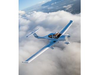 The flight will be from Hanscom Field in Bedford at a time, and over a route to be arranged with the winning bidder. Anyone acquainted with airplanes will marvel at the state-of-the-art Garmin G-1000 "glass cockpit," including synthetic vision. Visibility from the Diamond is extraordinary so the view and pleasure of flying will equally appeal to someone who may never before have been aloft in a small airplane.