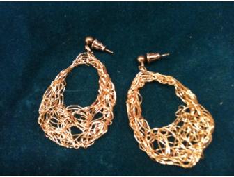 Unique hand-crocheted wire hoop earrings can be customized to suit, in either gold or silver. (Posts are gold-filled or sterling silver.) Designed by Anne Martin of Waban.