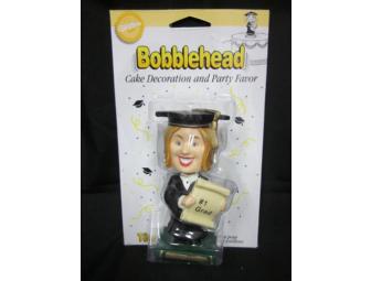 This adorable bobblehead is great for a cake topper, decoration, or a gift. Grad bobblehead stands approximately 4" high. Food safe.