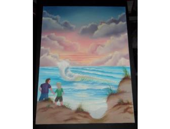 Painting is done in oils using the ‘Bob Ross’ style of painting. Painting depicts a couple out for a romantic walk in the dunes.