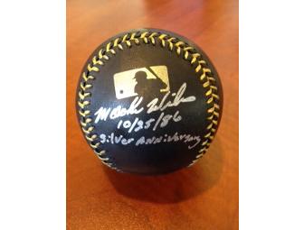 Mookie Wilson autographed Rawlings black leather baseball from the 10/25/1986 silver anniversary.