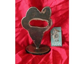 Freehand steel heart sculpture by Thomas Mann of Thomas Mann Design. Approximately 8" high by 5" wide.