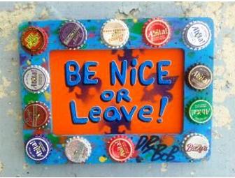 "Be Nice or Leave" sign with blue frame by the venerable Dr. Bob, 8.5" x 6.5"