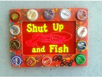 Dr. Bob Sign: "Shut Up and Fish" with Blue Frame (8.5" x 6.5")