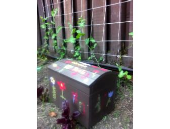Cooperatively created garden tool chest with handpainted decoration by the students.