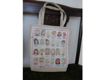 Individual canvas tote decorated with a wonderful print featuring class self-portraits.
