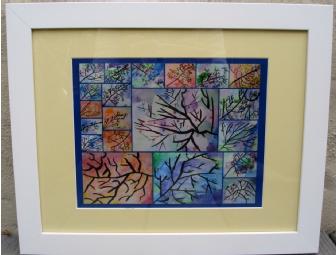 Cooperative framed 11" x 14" collage print with a lovely ink and watercolor trees.