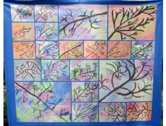 Cooperative fleece blanket embellished with lovely ink and watercolor trees .