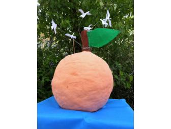Cooperative paper mache peach and peach recipe book inspired by Roald Dahl's James and the Giant Peach story.
