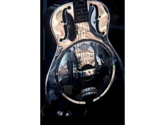 8x10 photograph of steel guitar with reflection, mounted on 12x16 canvas frame