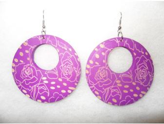 Wooden earrings, floral design etched on the wood.