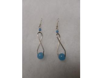 Silver earrings with blue beads.