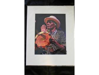Matted, color photo of Cyril Neville from the Tipitina's Foundation's 2011 Instruments A Comin' event, by San Francisco native, Rick Swig. Photo measures approximately 10.5"x15.5", matting measures approximately 16"x20".