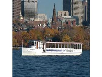 Four complimentary passes to the Sightseeing tour on the Charles River.  Passes valid for only regularly scheduled Charles River Tours departing from Cambridge Side Galleria Mall in Cambridge.  Cruises sail daily in the months of June, July, August and September and depart at 10:00 am, 11:15 am, 12:30 pm, 1:45 pm, 3:00 pm and 4:15 pm.