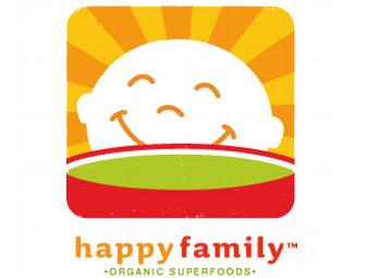 Get yourself and your baby on the right track with this Happy Family Brands nutrition kit. This package includes the Happy Baby: The Organic Guide to Baby's First 24 Months book, Prenatal Yoga DVD, Nutrition Guide, T-Shirt (size 12 M) and an array of Happy Family Brands products including baby food, snacks and coupons.