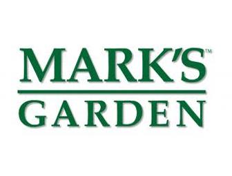 Enjoy a $50 certificate for flowers at Mark's Garden. The certificate is presented in a naturalistic frame made from twigs, bark and succulents.
