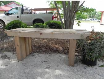 This solid wooden bench has simple, classic lines and was built by the Gateway Construction Tech students. The bench is unfinished and can be painted or stained any color you wish.