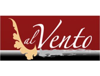 Gift Certificate to Al Vento restaurant. Specializing in Italian food, this South Minneapolis restaurant offers lunch, dinner, and Sunday brunch.