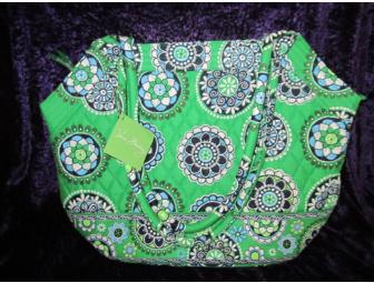 This fashionable tote combines good looks with functionality. The angle tote is generously sized with rolled handles and an oval base.