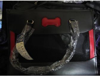 Fashionable and functional, these East Side Collection Pet Totes have the purse-style design preferred. Durable, black vinyl carriers have easy-access zippered openings on top and on one side. Mesh side panels allow ventilation and viewing access. Handles snap together for comfortable carrying by hand or on the shoulder. Paris Pet Totes are made of black vinyl and feature red vinyl front and back panels with an extra front mesh inset.