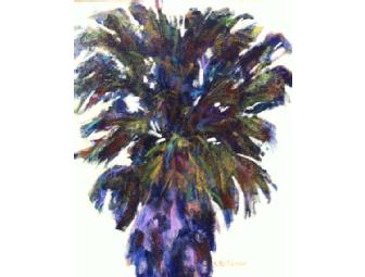 "La Palma Obscura" is a 20x24 inch acrylic on canvas painting by Sandra MacDiarmid, a well-known artist from the South Bay Area of Northern California.