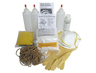 This is our own kit which we assemble for you. It's a good way to get started with tie-dye as it has everything you need, including instructions for various ways to use the dyes. It's not a bad idea to add a few more colors if you like and maybe a book like 'Tie-Dye' to expand your design options. It's great fun, and a good way to spend a day with some kids or friends.