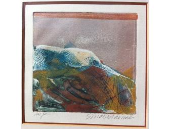 "Outerbanks" by Sandra MacDiarmid, a well-known artist from the South Bay Area of Northern California. Monotype/etching. Framed/glass 13x14.