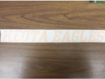 Keota Eagles team decal. Vynal lettering that will stick to nearly any surface. Put it on your vehicle, window, wall, nearly anywhere. "KEOTA EAGLES" in 2" yellow lettering. (white backing is removed once it is applied.