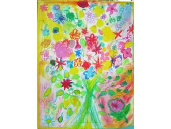 Memorable, priceless pastel on canvas collaborative painting by Yellow Rose Kindergarten.