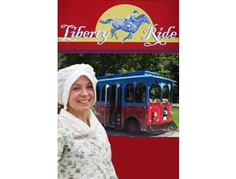 A family pack of tickets to the Liberty Ride, Lexington and Concord's famous trolley tour, complete with costumed guides. Good for two adults and up to five children. Ride along the Battle Road as your guide recounts the exiciting events of April 19, 1775.