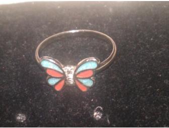 A great addition to any style jewelry collection! Indian style costume ring is silverplated with faux turqoise.