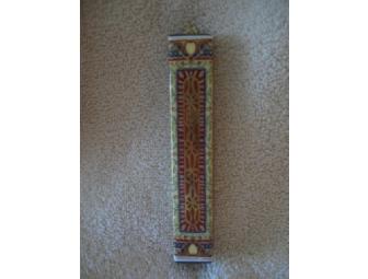 Beautiful, colorfully painted ceramic mezuzah, ready to display with space in back to insert the prayer scroll.