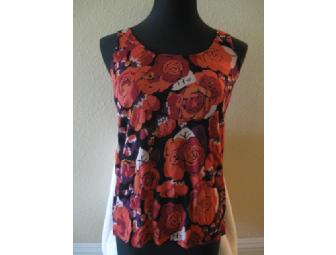 100% Viscose slipover rose design top with black lining.