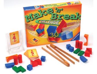 Perfect for family game night! Break into teams and have two players compete to build the wooden structures shown on the building cards. The challenge is that you can only handle the bricks with wooden tongs as you speed to finish building