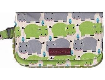 Fun and stylish Bungalow 360 wristlet featuring Hippo and Bluebird pattern.