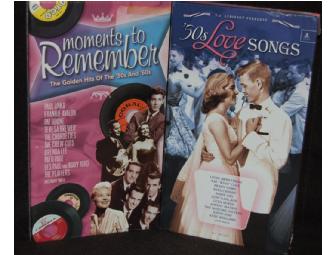 This package includes a 3-CD set of “Moments to Remember-The Golden Hits of the ‘50s and ‘60s” and a 3-CD set of “‘50s Love Songs”.  “Moments to Remember” takes you on a trip down memory lane with the most memorable songs of the era.  Features an amazing list of artists, including Nat "King" Cole, Paul Anka, Dean Martin, Patti Page and many more.  “`50s Love Songs” takes listeners back to the `50s where love was definitely in the air--especially when it came to the warm, inviting sounds floating out over the mainstream pop airwaves.  It's doubtful that any other single era produced as many timeless romantic songs as this golden era in which young love was exalted. This 3-CD collection features perpetual love songs from Nat "King" Cole, Desi Arnaz, Andy Williams, Pat Boone, Judy Garland, Eartha Kitt, Peggy Lee, Doris Day, Perry Como, Bing Crosby, Johnny Mathis, and many other