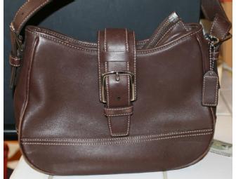 Very nice dark brown coach purse. Very good condition. Might find some stray basset fur inside of it!