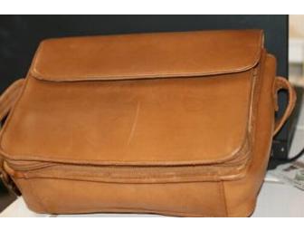Very nice Tignanello Purse. Pretty good condition. Has one scratch on backside (see picture) and a few pen marks on the front inside (see picture). The back opens up to hold credit cards and ID.