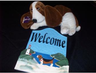 Basset 'Welcome' Sign + Plush Basset